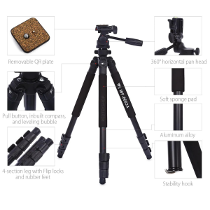 El trípode Weifeng WT-6663A es la herramienta ideal para fotógrafos y videógrafos que buscan estabilidad y versatilidad. Con su diseño robusto de aleación de aluminio y capacidad de carga de hasta 4 kg, asegura una sujeción firme para la mayoría de las cámaras DSLR y videocámaras, eliminando el movimiento y logrando tomas perfectas.